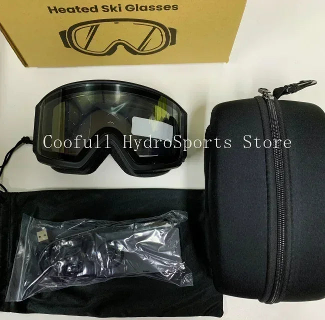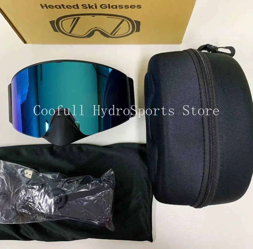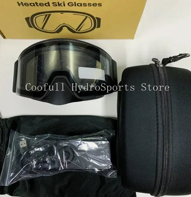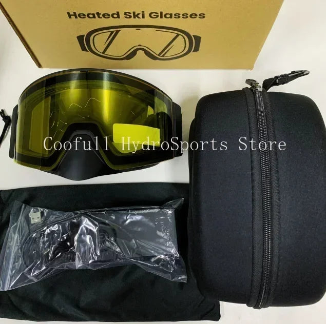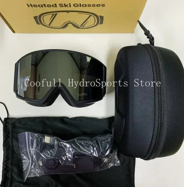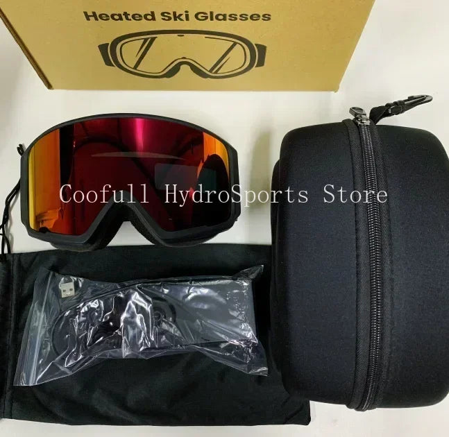 Electrically Heated Anti Fog Polarized Ski Goggles, Magnetic Interchangeable Gradient Lens, for Winter Sports, Snowboarding