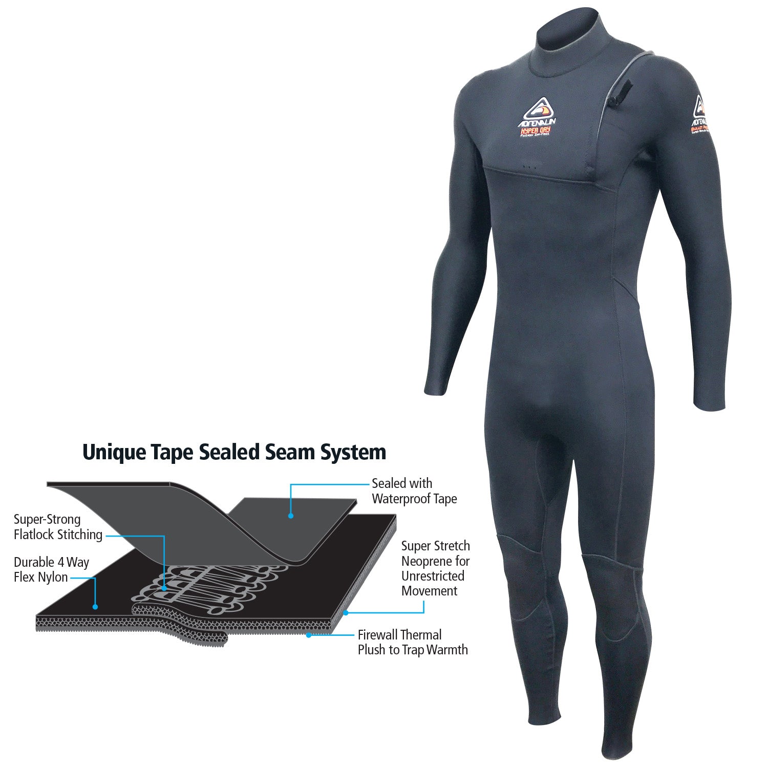 ADRENALIN Hyperdry NoZip Steam Full Wetsuit Mens Black XS Neoprene Firewall Thermal Super Stretch Flatlock Stitching Unique Tape Sealed Seam System