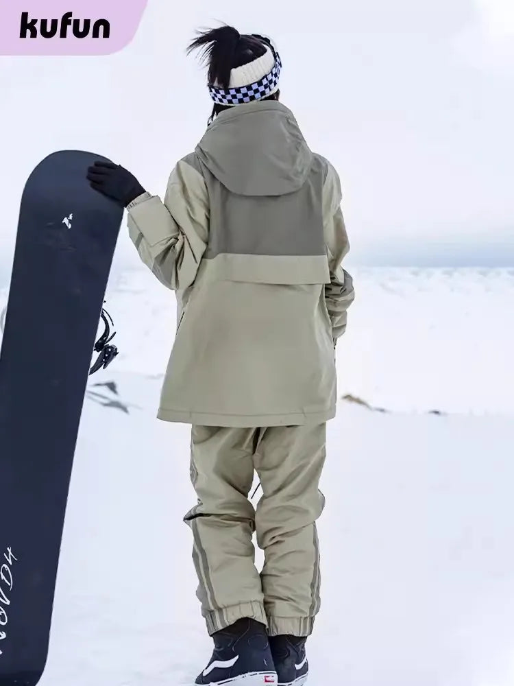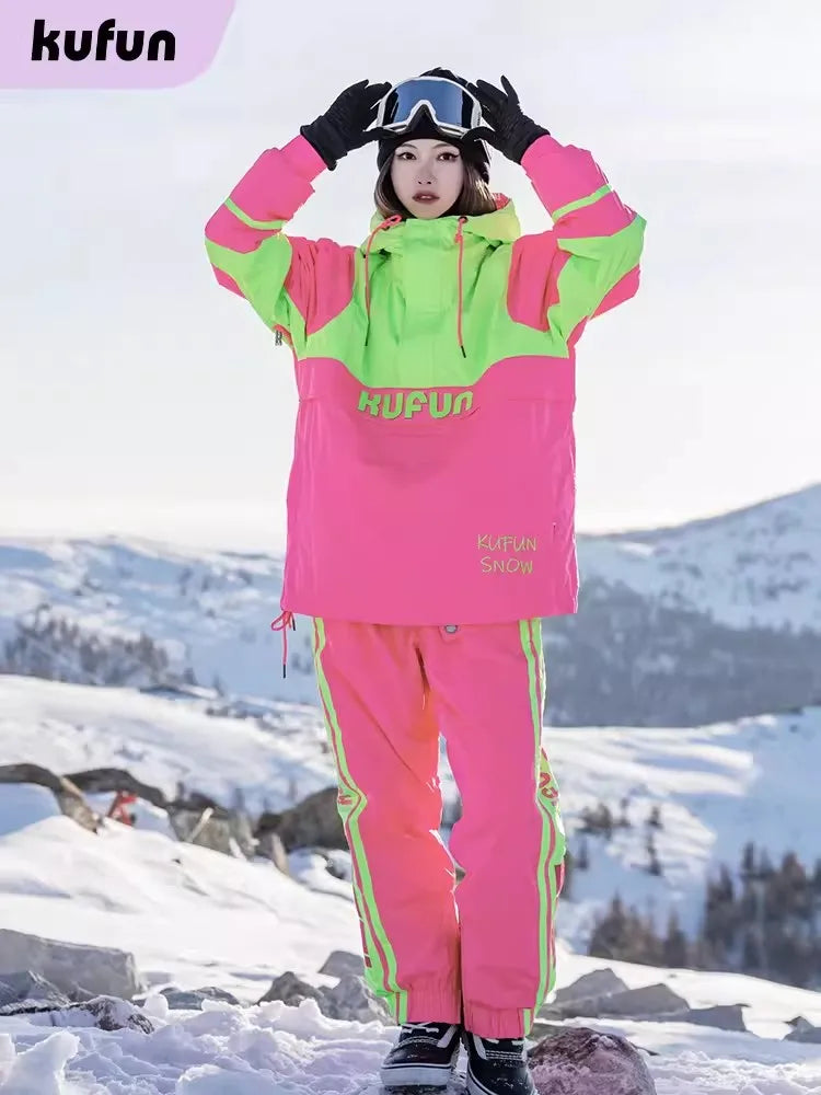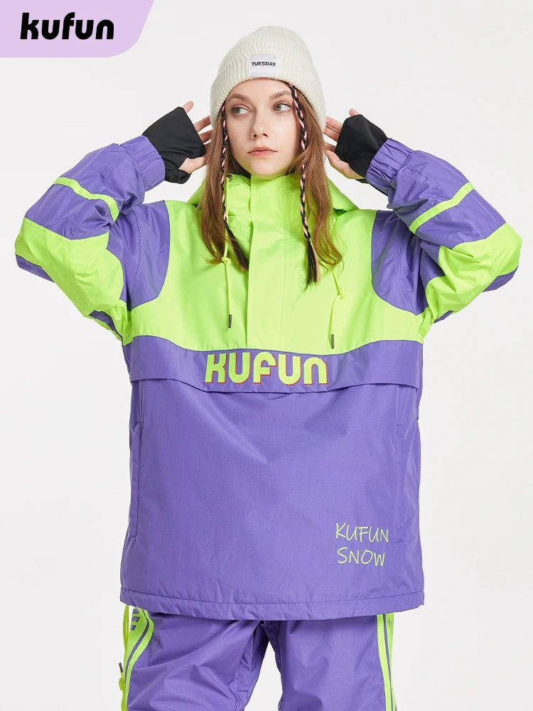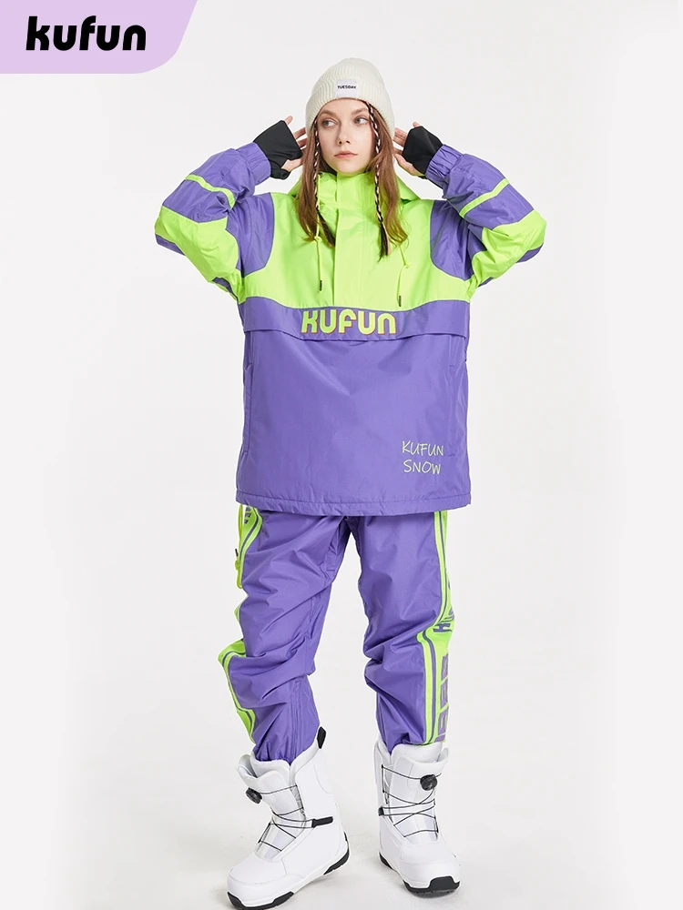 Kufun Ski Wear Snowboard Adult Men Woman Waterproof Snow Suit Hoodies Coat Pants Winter Outdoor Oversize Jacket Purple Warm Blue