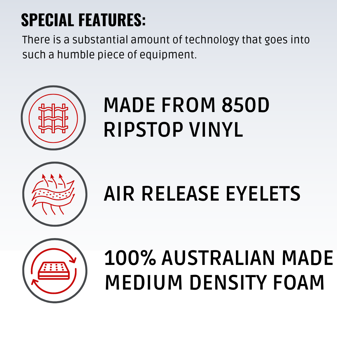 The Morgan Aventus round shield is the is manufactured using a medium density closed cell Australian made foam, covered in high resilient grade 850D ripstop vinyl exterior walls to offer a vivid, feel with every punch and strike. This Aventus round shield uses 16.5cm of medium density closed-cell foam, which when it is struck, the foam complex will rebound right back into original round shape so they are active, responsive and reactive with every impact. Complete with 2 x thick, padded, triple reinforced, machine-stitched side handles crafted to take a pounding and come back for more. Our Aventus extra-lightweight, heavy-duty round shield is ideal for beginner and intermediate level hitters, athletes and trainers seeking a more impact-free workout.