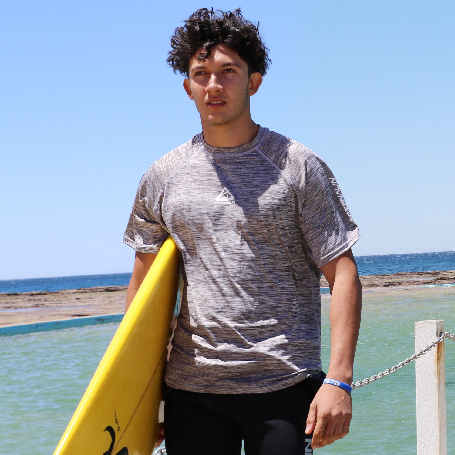 ADRENALIN Surf T-Shirt Rash Guard Short Sleeve Grey XS UPF 50+ for Men Watersports Diving Accessories UV Protection