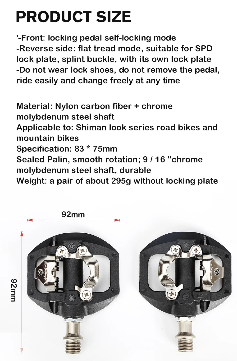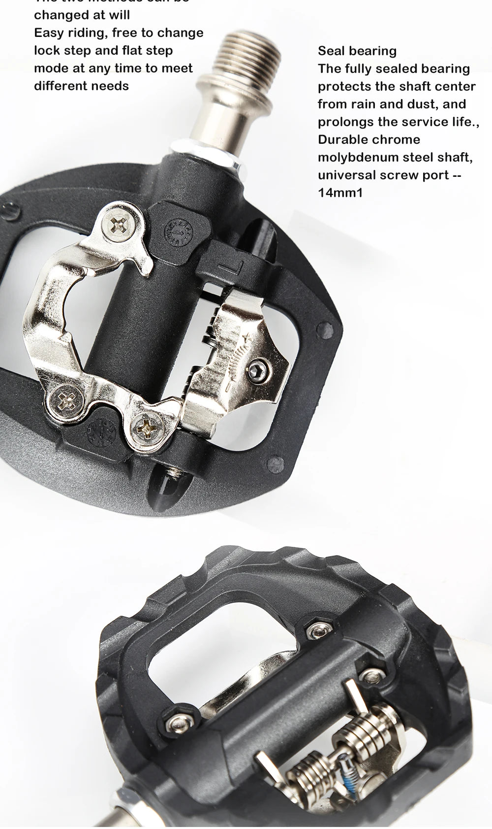 Locking Pedal Mode (Front Side): Features a self-locking design compatible with SPD lock plates, ensuring secure foot placement for efficient pedaling.