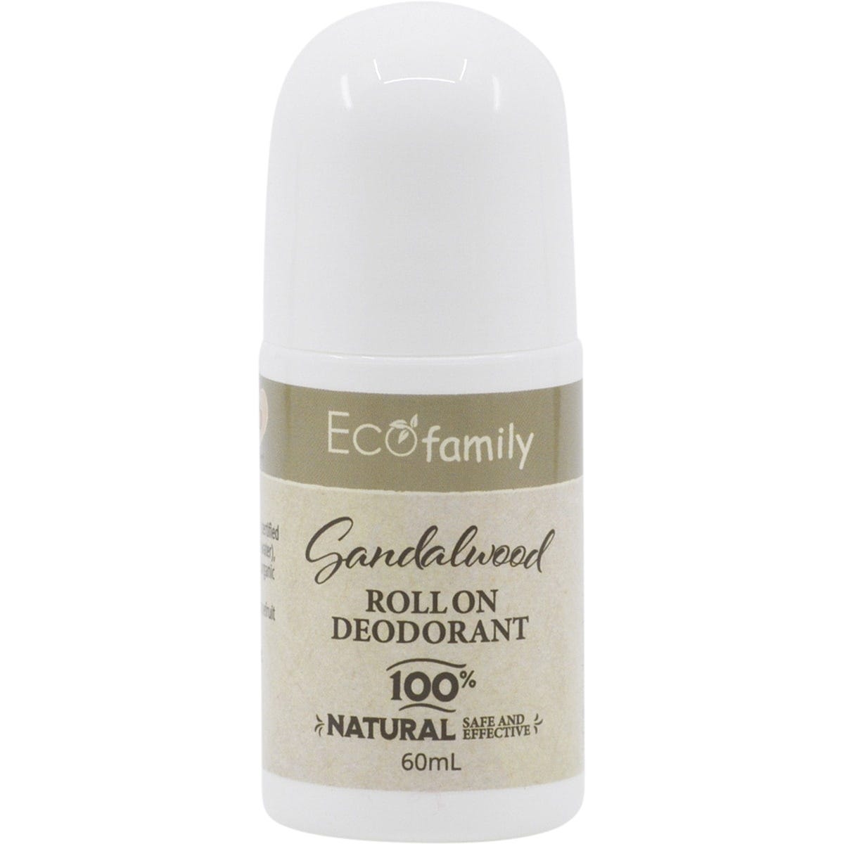 Description: Roll-On Deodorant Eco Family Sandalwood Aluminium Free<\br>Stockcode: VR172<\br>Brand: Vrindavan<\br>Size: 60ml<\br>Moq Cartons of 1<\br>Ingredients: Aloe Vera Juice (Certified Chemical Free),... Read more