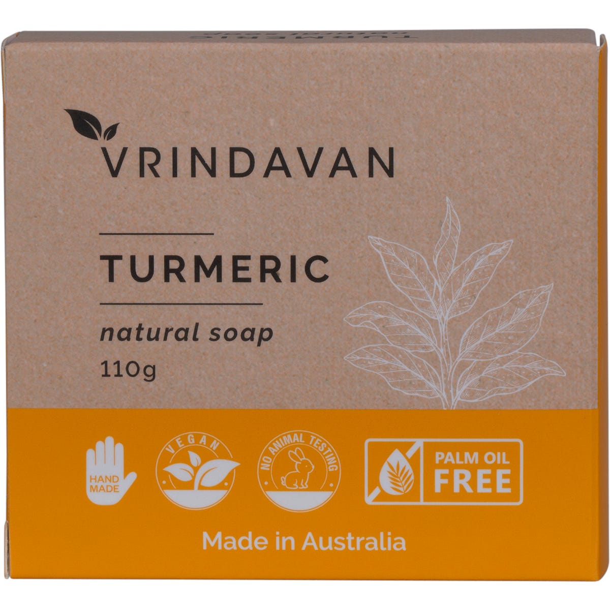 Description: Turmeric Soap<\br>Stockcode: VR180<\br>Brand: Vrindavan<\br>Size: 110g<\br>Moq Cartons of 1<\br>Ingredients: Ingredients: Coconut Oil, Olive Oil, Sunflower Oil, Rice Bran Oil, Purified... Read more