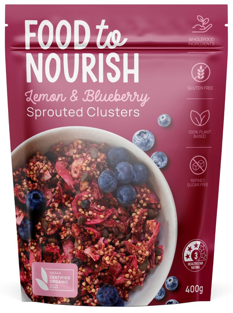 FOOD TO NOURISH CLUSTERS LEMON & BLUEBERRY 400G