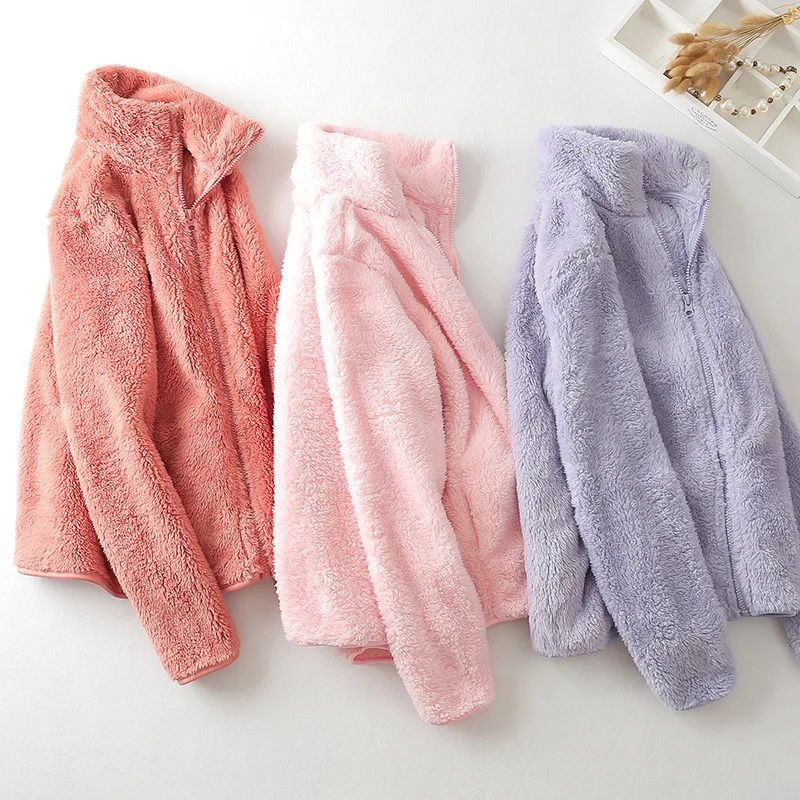 Winter Coral Fleece Coat Women's Anti-Snow Jacket Double-Sided Soft Men's Thickened Outwear Warm Outdoor Top Stormcoat Liner