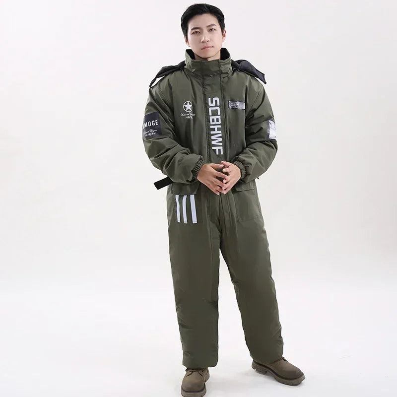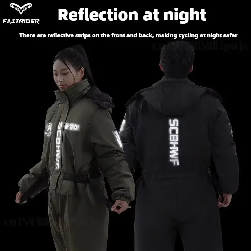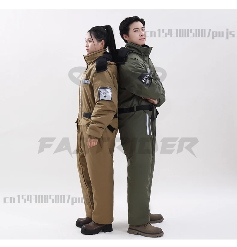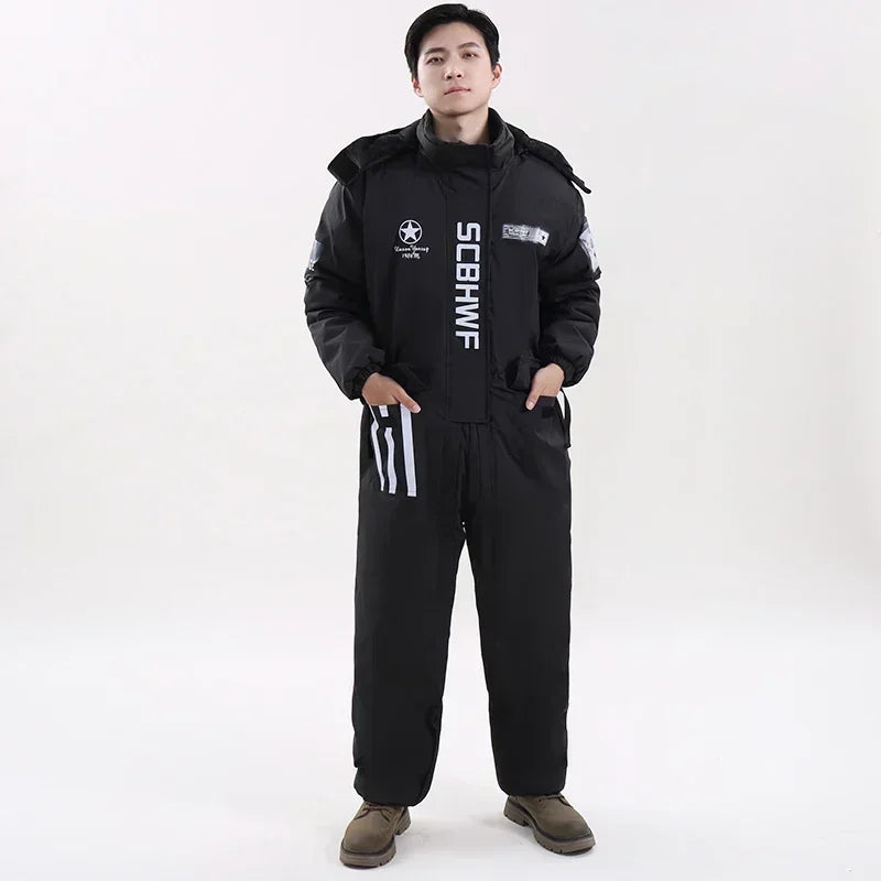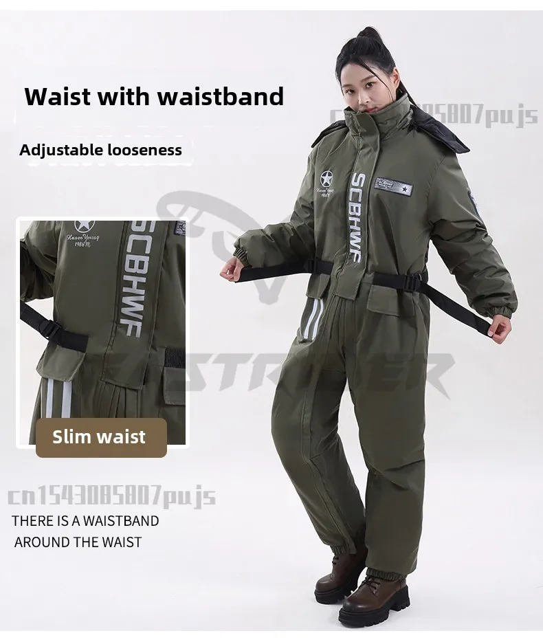 Winter Waterproof Windproof Ski Suit Thick Fleece Jumpsuit for Men Women, Cold Resistant Motorcycle Riding Suit