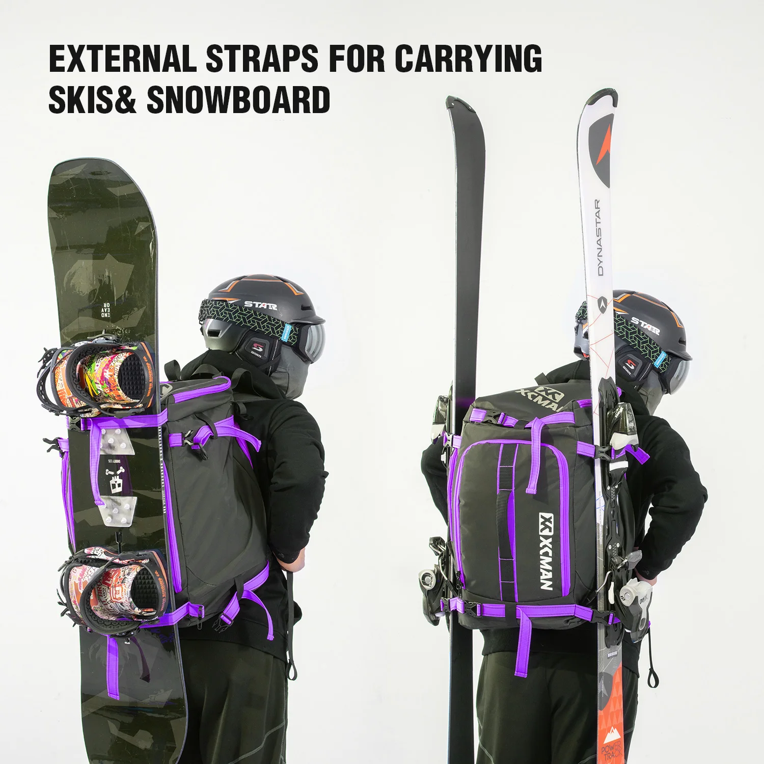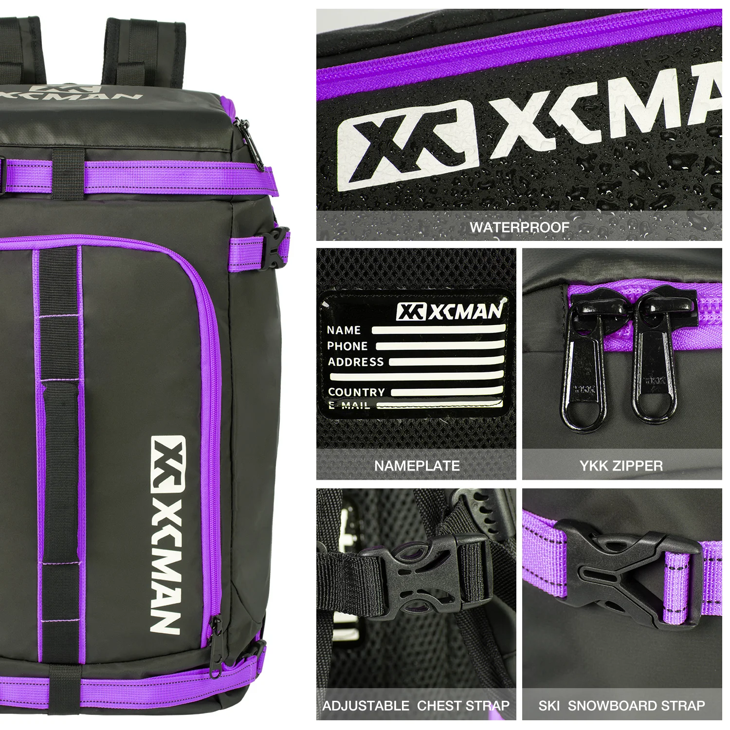XCMAN 50L Capacity Waterproof Ski Backpack Bag with Individual Compartments for Helmet,Boots,Clothes,Hanging Snowboard