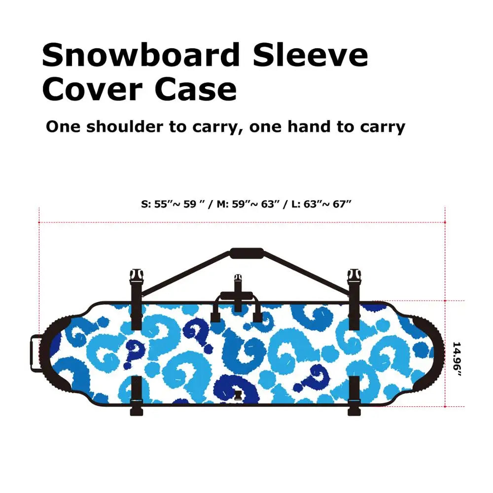 6,FITS MOST BOARDS:Super elastic Neoprene Fabric.S size 140cm - 150cm(55" - 59");M size 150cm - 160cm(59" - 63");L size 160cm - 170cm( 63" - 67)long for 360 degree edge protection to your snowboard when storing, transporting in a van, or on top of your car in a roof rack.