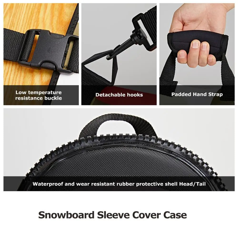 4,EASY TO CARRY STORE:The Snowboard sleeve Case has an easy carrying handle as well as shoulder strap for those longer outdoor hikes.Light weight for friendly store after snow season.Great for Travel and doubles as a snowboard suitcase so you're able to be stacked on one another the snowboard travel bag is an essential.